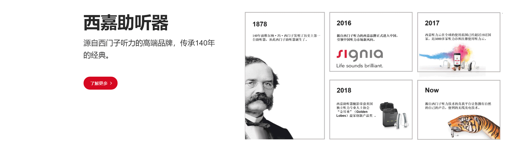 廈門悅聆聲聽力科技有限公司,德國西嘉助聽器廈門地區的授權服務商。公司經過十六年的發展,目前擁有多名國家職業三級和四級助聽器驗配師,助聽器驗配中心的服務網點目前分布在廈門、漳州和莆田等城市,“專業化的驗配專業化的服務”是公司每位驗配師一直堅持的職業原則和宗旨。西嘉助聽器源自西門子聽力,傳承140多年的經驗技術,在聽力研究、助聽器研發和生產等領域享有盛譽。其足跡遍布全球100多個國家和地區,不斷創新,竭盡推動聽力行業發展。西嘉助聽器繼承了西門子聽力逾百年的科技精髓,擁有強大的研發創新能力。我們將利用這些先進的產品技術為廈門地區聽力損失患者提供專屬個人的聽力解決方案,為您解決聽力上的煩惱,重回有聲的精彩聽世界。